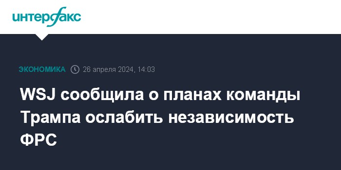 Москва. 26 апреля. INTERFAX.RU - Команда Дональда Трампа готовит предложения, которые позволили бы ослабить независимость Федеральной резервной системы США в случае возвращения бывшего президента в Белый дом, пишет The Wall Street Journal.
