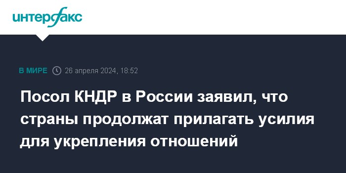 Посол КНДР в России заявил, что страны продолжат прилагать усилия для укрепления отношений