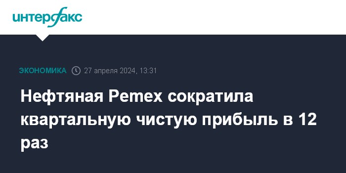 Москва. 27 апреля. INTERFAX.RU - Мексиканская государственная нефтяная компания Petroleos Mexicanos (Pemex) в первом квартале 2024 года существенно снизила чистую прибыль из-за снижения продаж, курсовых разниц и роста себестоимости.
