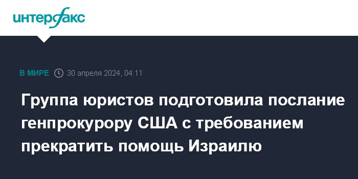 Москва. 30 апреля. INTERFAX.RU - Группа американских и иностранных юристов подготовила письмо генеральному прокурору США Меррику Гарланду с требованием прекратить поставки оружия Израилю, сообщила газета Politico.