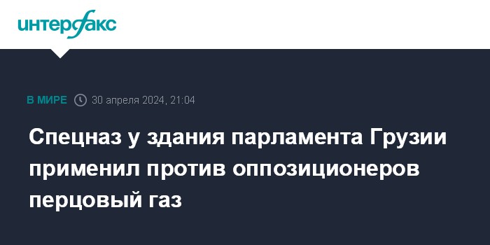 Москва. 30 апреля. INTERFAX.RU - Спецназ применил перцовый газ против участников акции протеста у здания парламента Грузии, которые забрасывали полицейских различными предметами.