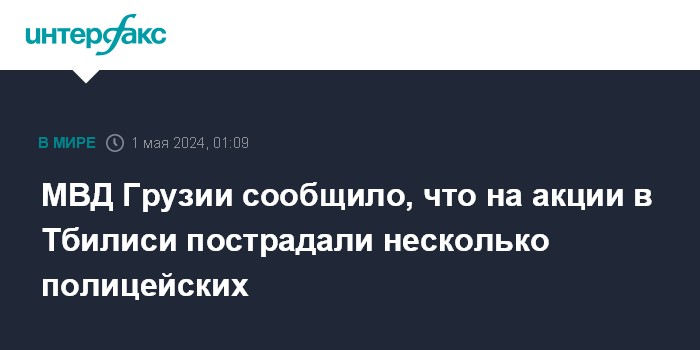Москва. 1 мая. INTERFAX.RU - Несколько полицейских госпитализированы в результате столкновения с митингующими в Тбилиси, сообщает МВД Грузии.
