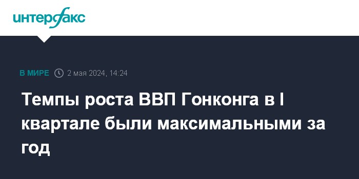 Темпы роста ВВП Гонконга в I квартале были максимальными за год
