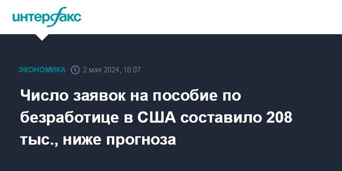 Число заявок на пособие по безработице в США составило 208 тыс., ниже прогноза