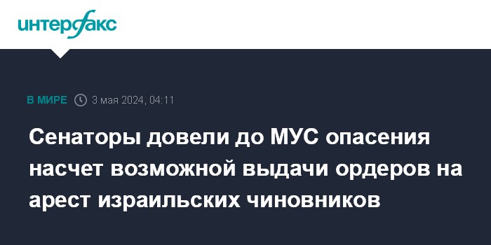"Двухпартийная группа сенаторов провела виртуальную встречу с высокопоставленными должностными лицами МУС и выразила обеспокоенность по поводу возможной выдачи ордеров на арест лидеров Израиля", - пишет портал со ссылкой на трех осведомленных о встрече источников.