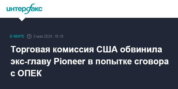 Торговая комиссия США обвинила экс-главу Pioneer в попытке сговора с ОПЕК