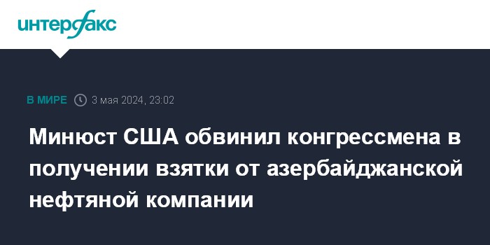 Минюст США обвинил конгрессмена в получении взятки от азербайджанской нефтяной компании