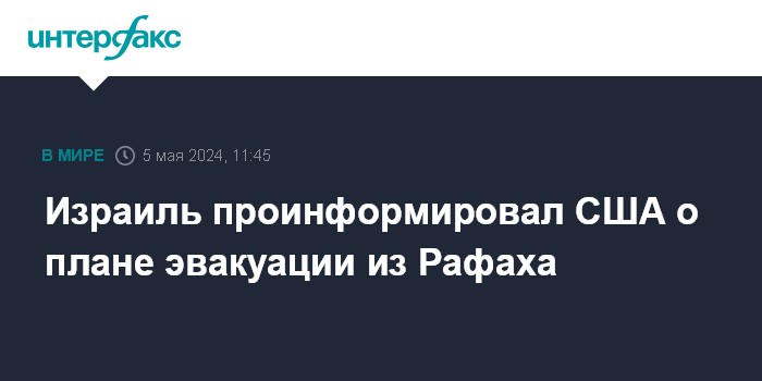 "Американские официальные лица (...) заявили, что план, подробно изложенный израильтянами, не изменил точку зрения администрации США, что проведение операции в Рафахе угрожало бы слишком значительному числу невинных палестинцев", - информирует агентство.