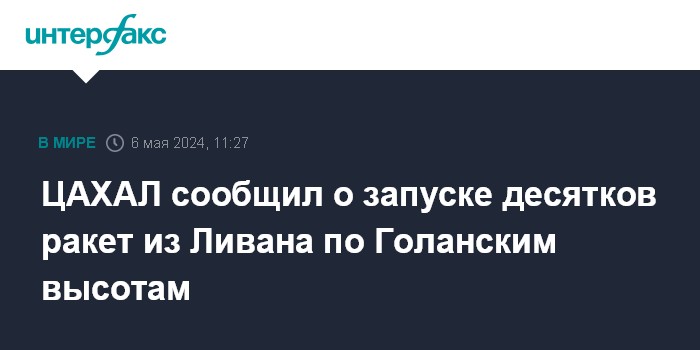 Москва. 6 мая. INTERFAX.RU - С территории Ливана по по контролируемым Израилем Голанским высотам были запущены три десятка ракет, сообщила Армия обороны Израиля.