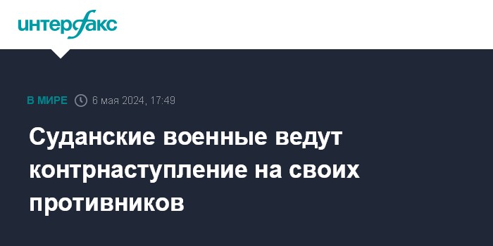 Москва. 6 мая. INTERFAX.RU - Вооруженные силы Судана начали контрнаступление с целью вернуть контроль над городом Вад-Медани - административным центром провинции Эль-Гезира к юго-востоку от суданской столицы Хартума, сообщает выходящее в ОАЭ издание The National.