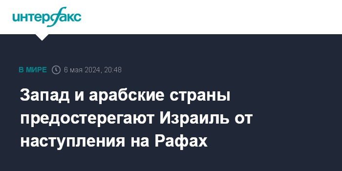 Запад и арабские страны предостерегают Израиль от наступления на Рафах
