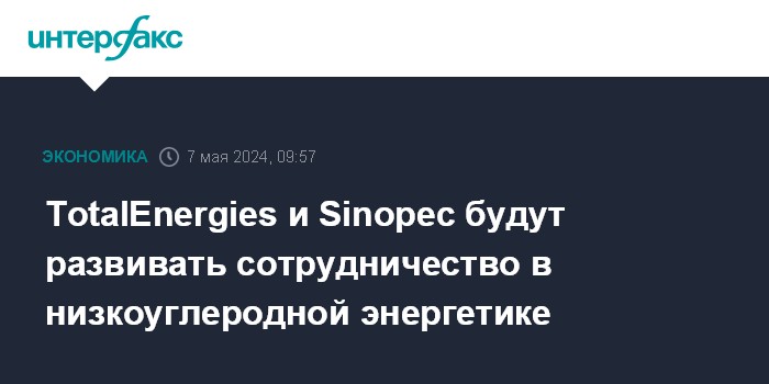 TotalEnergies и Sinopec будут развивать сотрудничество в низкоуглеродной энергетике