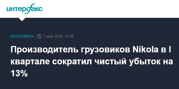 Москва. 7 мая. INTERFAX.RU - Американский производитель электрогрузовиков и грузовиков на водородном топливе Nikola Corp. в первом квартале сократил чистый убыток на 13%, при этом скорректированный показатель оказался чуть лучше прогноза.