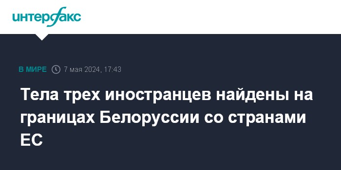 Москва. 7 мая. INTERFAX.RU - Госпогранкомитет Белоруссии сообщил о гибели трех иностранцев на границах республики с Польшей и Латвией. Их тела были найдены белорусскими пограничниками.