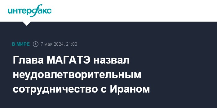 Москва. 7 мая. INTERFAX.RU - Гендиректор МАГАТЭ Рафаэль Гросси во вторник заявил, что сотрудничество между агентством и Тегераном нельзя считать беспроблемным.