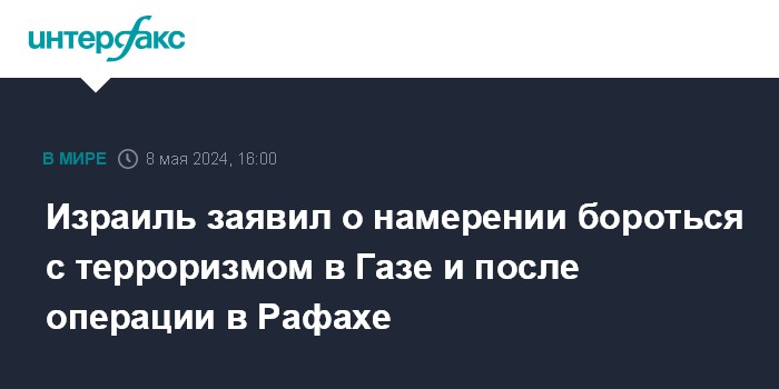 Израиль заявил о намерении бороться с терроризмом в Газе и после операции в Рафахе