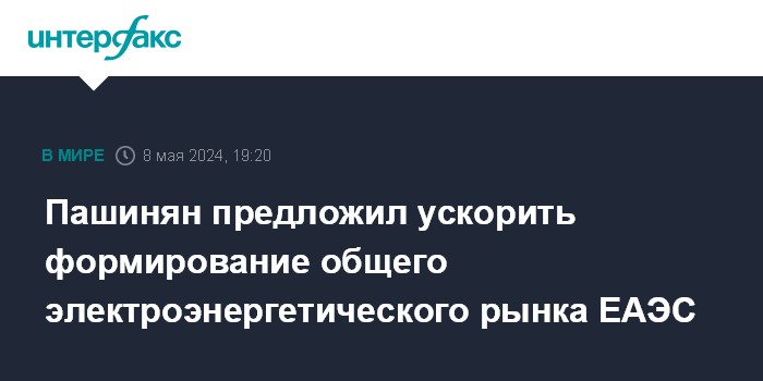 Москва. 8 мая. INTERFAX.RU - Премьер-министр Армении Никол Пашинян заявил, что процесс формирования общего рынка с едиными системами регулирования в сфере энергоресурсов в рамках ЕАЭС затянулся и не может длиться бесконечно.