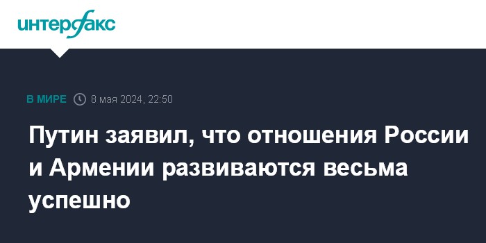Путин заявил, что отношения России и Армении развиваются весьма успешно