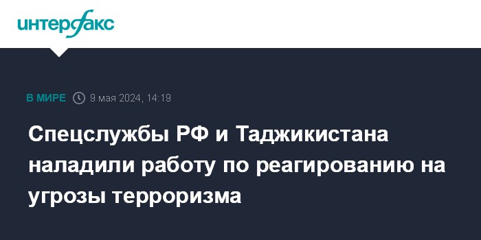 Москва. 9 мая. INTERFAX.RU - Работа спецслужб России и Таджикистана по реагированию на общие террористические угрозы налажена, заявил президент РФ Владимир Путин на переговорах с президентом Таджикистана Эмомали Рахмоном в Кремле.