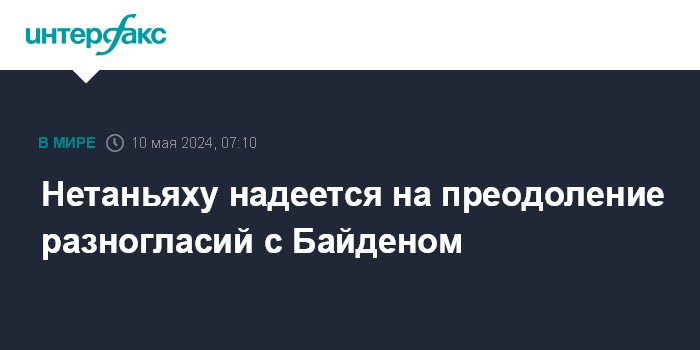 Москва. 10 мая. INTERFAX.RU - Премьер-министр Израиля Биньямин Нетаньяху выразил надежду, что он и президент США Джо Байден смогут преодолеть свои разногласия по поводу войны в секторе Газа, сообщило издание "Гаарец".