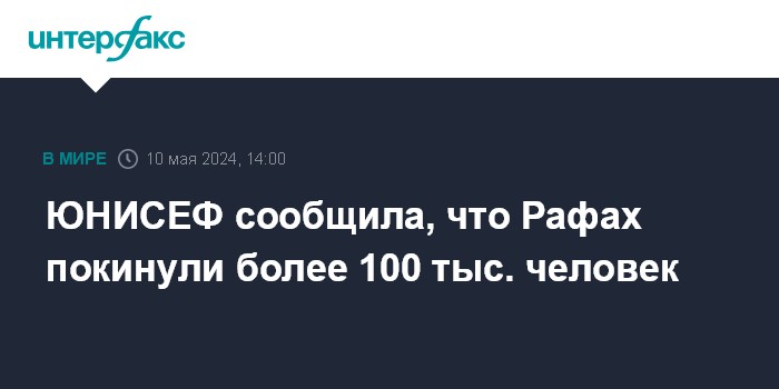 "За последние пять дней более 100 тыс. человек покинули Рафах", - приводит его оценку ЮНИСЕФ на своем сайте.