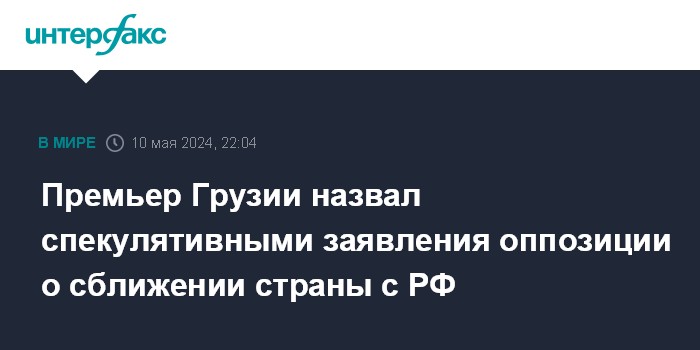 Москва. 10 мая. INTERFAX.RU - Премьер-министр Грузии Ираклий Кобахидзе считает спекулятивными заявления оппозиции об изменении внешнеполитического курса с евроинтеграции на сближение с Россией.