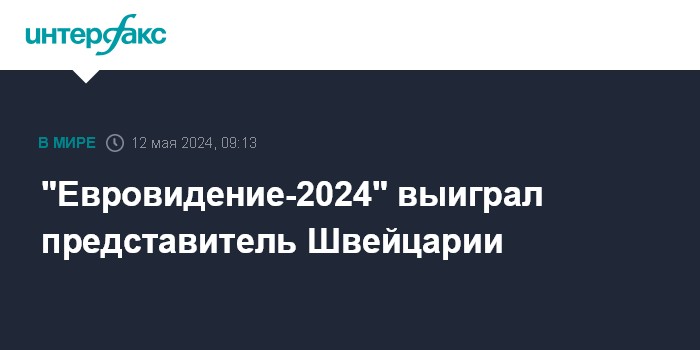 Москва. 12 мая. INTERFAX.RU - Победителем международного песенного конкурса "Евровидение" стал представляющий Швейцарию певец Nemo с песней "The Code", финал конкурса проходил в субботу в шведском городе Мальмё.
