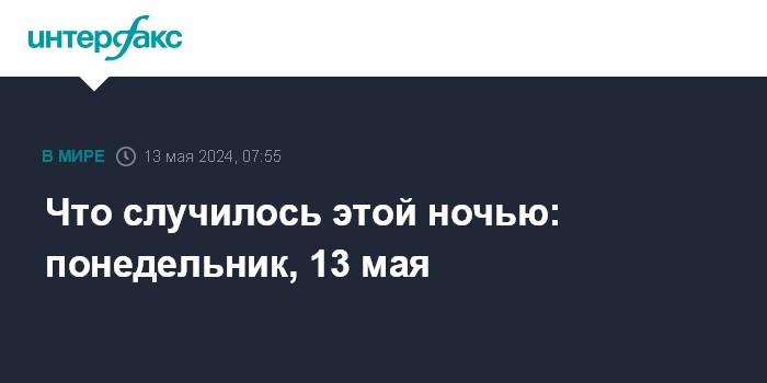 Москва. 13 мая. INTERFAX.RU - Краткая сводка событий, произошедших к утру: