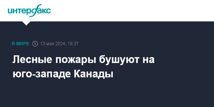 Москва. 13 мая. INTERFAX.RU - Канадские пожарные ведут борьбу с продолжающими распространяться природными пожарами в провинциях Британская Колумбия и Альберта, сообщают в понедельник канадские СМИ.