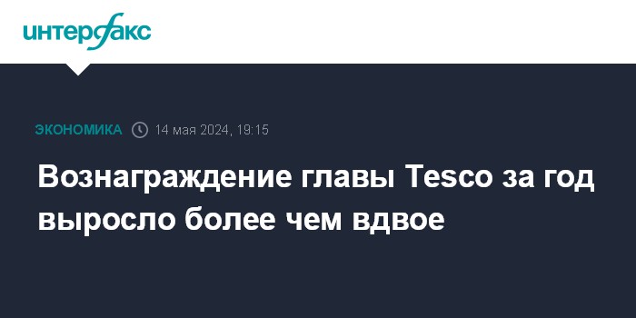 Москва. 14 мая. INTERFAX.RU - Вознаграждение главы крупнейшей британской сети супермаркетов Tesco Plc Кена Мерфи в 2024 финансовом году увеличилось более чем вдвое, говорится в годовом отчете компании.
