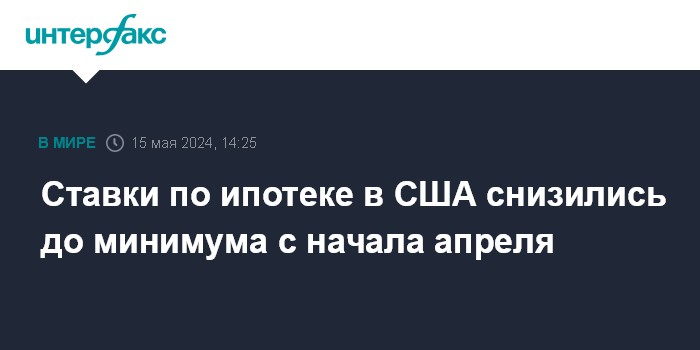 Ставки по ипотеке в США снизились до минимума с начала апреля