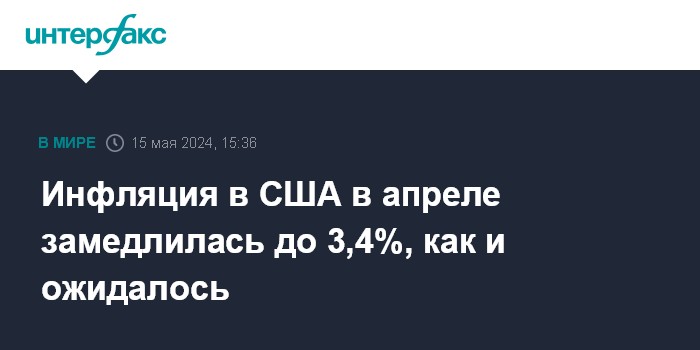 Инфляция в США в апреле замедлилась до 3,4%, как и ожидалось