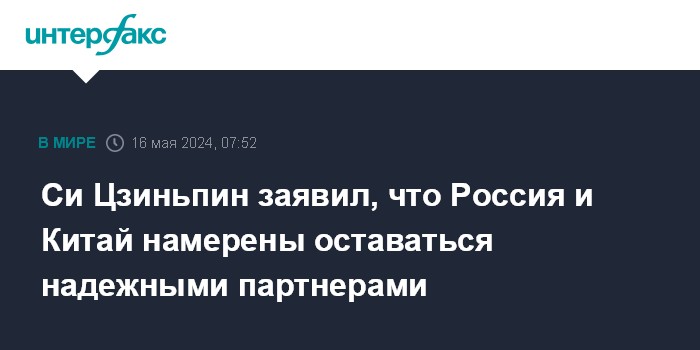 Си Цзиньпин заявил, что Россия и Китай намерены оставаться надежными партнерами