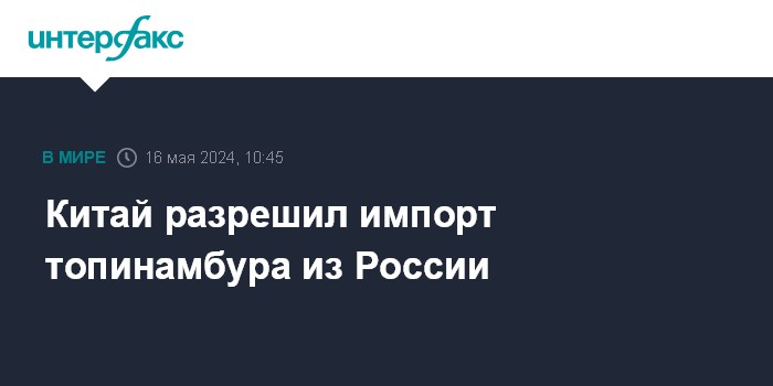 Москва. 16 мая. INTERFAX.RU - Китай разрешил поставки топинамбура из России и расширил список ввозимых говяжьих субпродуктов, сообщает Россельхознадзор.