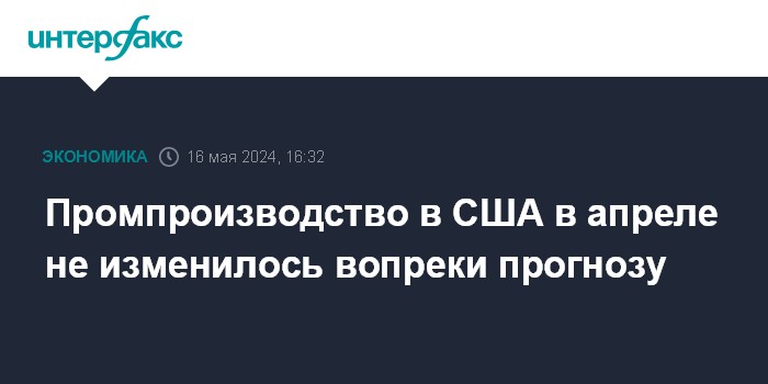 Промпроизводство в США в апреле не изменилось вопреки прогнозу