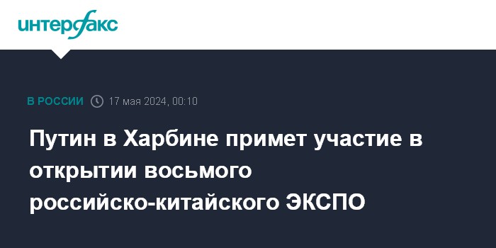 Путин в Харбине примет участие в открытии восьмого российско-китайского ЭКСПО