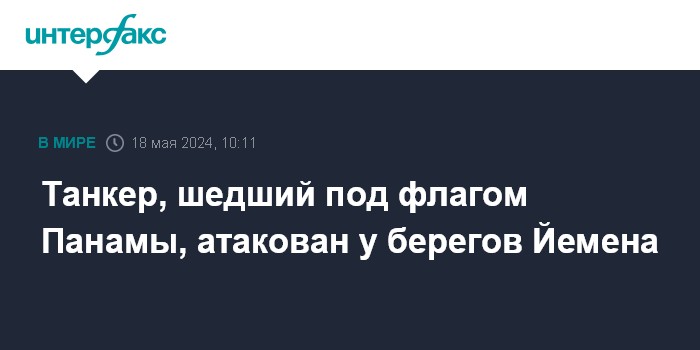 Москва. 18 мая. INTERFAX.RU - Танкер, шедший под флагом Панамы, в субботу подвергся нападению вблизи побережья Йемена, сообщают западные СМИ со ссылкой на британскую компанию Ambrey, оказывающую услуги в сфере безопасности.