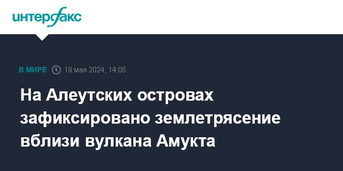 На Алеутских островах зафиксировано землетрясение вблизи вулкана Амукта
