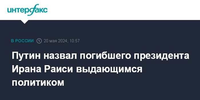 Москва. 20 мая. INTERFAX.RU - Президент РФ Владимир Путин назвал "огромной трагедией" гибель в авиакатастрофе президента Ирана Ибрахима Раиси, назвал его выдающимся политиком.