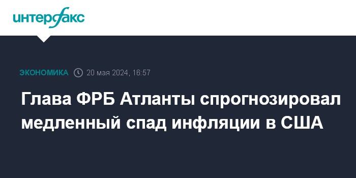 Глава ФРБ Атланты спрогнозировал медленный спад инфляции в США