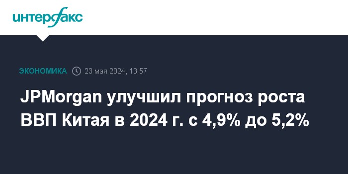 JPMorgan улучшил прогноз роста ВВП Китая в 2024 г. с 4,9% до 5,2%