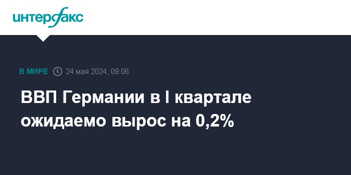 Москва. 23 мая. INTERFAX.RU - ВВП Германии в первом квартале 2024 года вырос на 0,2% по сравнению с предыдущими тремя месяцами, согласно окончательным данным Федерального статистического агентства страны.
