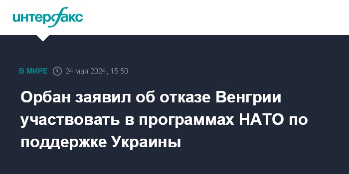 Москва. 24 мая. INTERFAX.RU - Премьер-министр Венгрии Виктор Орбан заявил, что Будапешт не собирается участвовать в инициативах НАТО, нацеленных на поддержку Украины, передает AP.