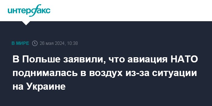 Москва. 26 мая. INTERFAX.RU - Авиация Польши и ее союзников по НАТО поднималась в воздух на фоне воздушной тревоги на Украине, сообщило в воскресенье Оперативное командование польских вооруженных сил.