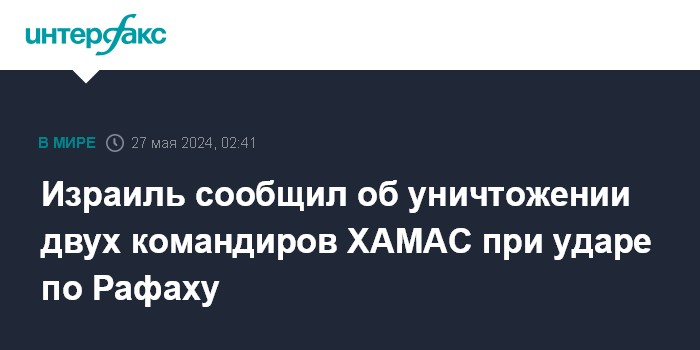 Израиль сообщил об уничтожении двух командиров ХАМАС при ударе по Рафаху