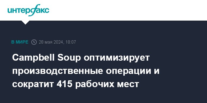 Campbell Soup оптимизирует производственные операции и сократит 415 рабочих мест