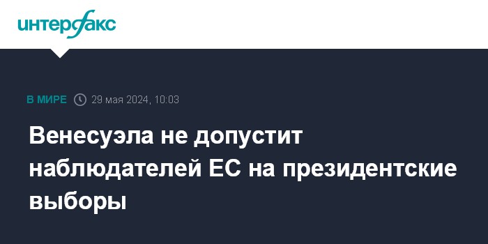 Москва. 29 мая. INTERFAX.RU - Национальный избирательный совет Венесуэлы аннулировал приглашение Евросоюзу направить миссию по наблюдению за ходом президентских выборов 28 июля, сообщает в среду EFE.