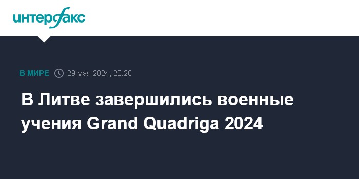 Москва. 29 мая. INTERFAX.RU - В Литве завершились крупномасштабные военные учения Grand Quadriga 2024 ("Большая квадрига 2024"), в которых принимали участие военные из Литвы, Нидерландов и Германии, а также французско-германская военная бригада.