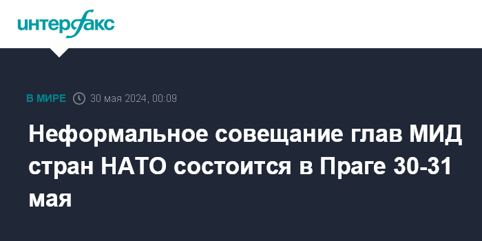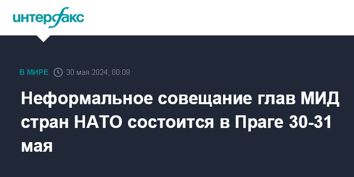 Москва. 30 мая. INTERFAX.RU - Двухдневная неформальная встреча министров иностранных дел государств Североатлантического альянса откроется в четверг в столице Чехии Праге. Он пройдет 30-31 мая.