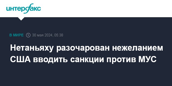 Нетаньяху разочарован нежеланием США вводить санкции против МУС